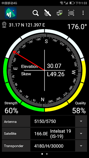 4.اتبع خط السهم الأحمر لتحريك طبق الأقمار الصناعية بعد توفر GPS ، وجعل قوة الإشارة وجودة لأفضل حالة.