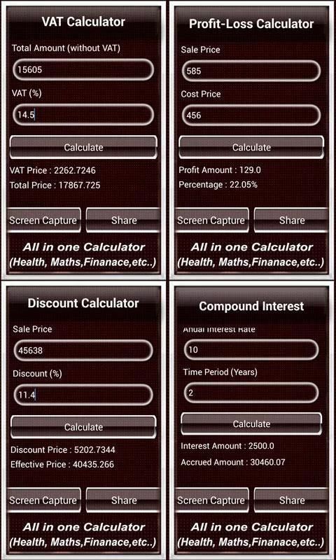 ويوم ليوم حاسبة التطبيقات دعم 35 أنواع مختلفة من الحسابات مثل النسبة المئوية، الصحة، آلة حاسبة علمية، تحويل العملات، المجلد حساب، وحدة تحويل أنواع. هذا هو استخدام آلة حاسبة أداة الكل في واحد للأنشطة اليومية. لديك خيار لإنقاذ شاشة الحاسبة والخيار أيضا إلى متصفح الحسابات المحفوظة أيضا مشاركة الخيار حصة calculation.And.