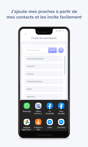 → تحديد المشاركين عن طريق إدخال اسمهم أو الاسم الأول وأرسل لهم رابطا لدعوتهم للانضمام إلى Daret