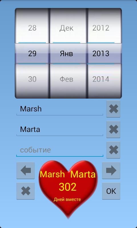إذا كنت قد نسيت تاريخ أو نريد فقط كل يوم ل ترى كم كنت و المفضلة لديك ( المفضلة ) بقينا معا لعدة أيام - وضعت " يوم معا" القطعة على سطح المكتب من الشاشة الرئيسية .