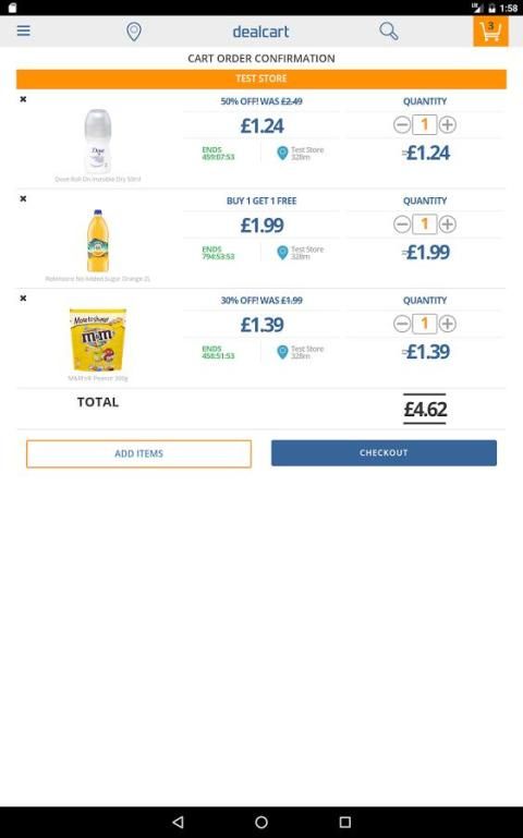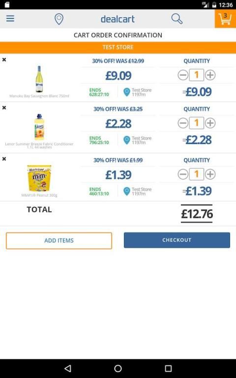 DealCart بيتا هو أعلى متابعة التطبيق التسوق المحلية مساعدتك في العثور على أفضل الصفقات من حولك على المنتجات التي تريد! أيضا نحن تسهيل أوامر للمجموعات أو للتسليم (رهنا بتوافر، قريبا) لمنتجاتك من المتاجر المحلية في اقل من 1 ساعة.