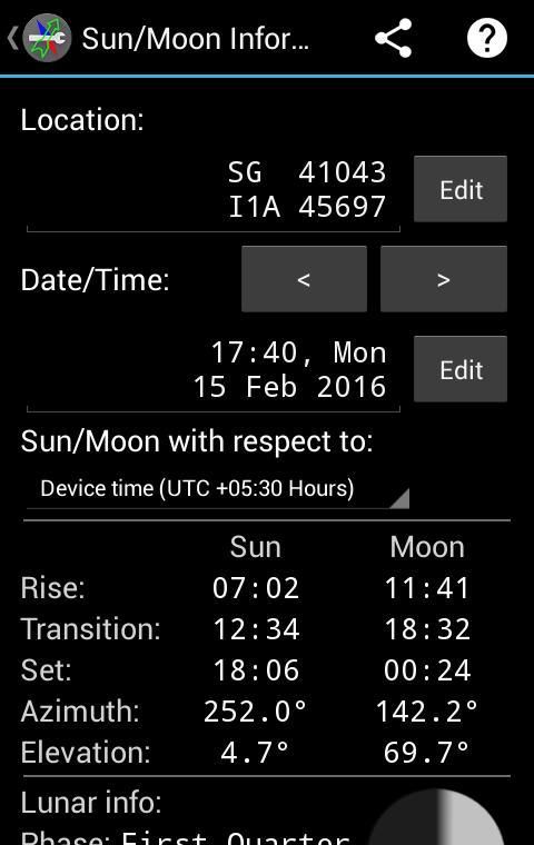 & # 8226؛ الشمس والقمر المعلومات للموقع المحدد والوقت.