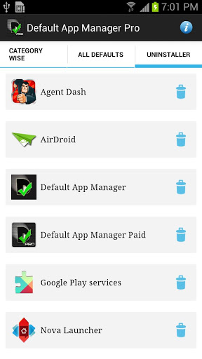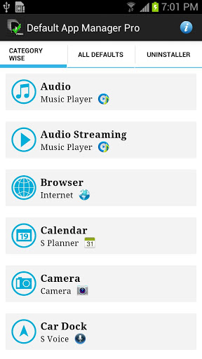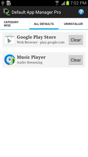 Hassle Free managing of Default Apps for various categories. All in one placeDisclaimer : 1. Before you read any further, please be informed this is a PAID application. You can install the application on your phone but the features would be unlocked only when you make a payment via VisaMasterCardPaypal.2. The paymentgateway used in the application is provided by Zooz www.zooz.co. It is a highly secure platform intended at inapp purchases.3. Please note : WE DO NOTHAVE ACCESS TOSAVESTORE your credit card details or Paypal credentials.4. If you want to buy from Goole Play Store instead you can use this link : https:play.google.comstoreappsdetails?idcom.appiator.dampro Default App Manager Paid is an AdFree version of one of the most unique App Managers available on the Market. It is a simple app to manage default apps for different types of actions that Android does.This app allows to you to manage for almost all the common actions.It eliminates all the hassles and troubles of remembering defaults set for various applications such as audio Video, Email, SMS, etc. It is very handy for active Android lovers who use a wide range of apps and keep changing them from the default Android settings.FAQs:Q: Why DAM Pro?A: As millions of apps are appending to the Android Market each month offering multiple options for a particular category such as Music, Video, etc., we are forced to cherrypick a default app for a particular category while performing some action. We know how to set the default, but we are pestered while clearingresetting the set default. None of the App Managers or task Managers on the Android Market targeted this issue. So, DAM is an exclusive amp; innovative app that eliminates the hassle of settingclearing defaults, amp; Uninstalling any app from DAM itself.Q: What is the difference between the Lite and Pro versions?A:Most notably, its an ADFREE Donate Version. It has an inbuilt Uninstaller as some customers as per some user requests. We are relentlessly refining our UI to provide finest experience.Core features of DAM Pro are: AdFree version with the Improved UIDisplays a list of different categories and the default app selected for each one of them Wide range of categories consists of Audio, Audio Streaming, browser Email, Home Launcher,Messaging, PDF files, Phone dialer Video and Video Streaming Exhibit a list of applications that can be used for a particular type of category Clear defaults of a particular category without remembering the set default or without cruising all theway into the Android default settings screen Reduces atleast 4 user clicks and saves the time to search the app with default set Allows you to set default for any category from the application itself.PLEASE READ THE BELOW INSTRUCTIONS BEFORE USING:1. To set the default application, please check the 39;USE BY DEFAULT ICON39; and only then select the application. Otherwise, the application WILL NOT BE set as the default one.2. Once the default app is SET, the application will open. It might however open with some errormessage like 39;FILE CANNOT BE OPENED39; or 39;ERROR WHILE OPENING FILE39;. Don39;t worry, the application is SET as default successfully. You can verify by clicking BACK BUTTON on that application and going backto Default App Manager.Tags:Default, SetClear Defaults, Uninstaller, remove apps, Android App Manager, APK uninstaller, DefaultCleaner, APK Manager, Simple Manager