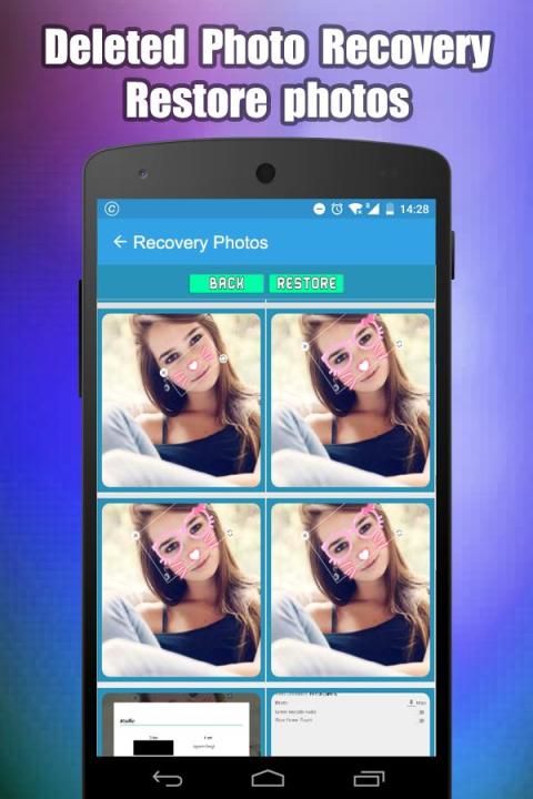 بعد تثبيت وفتح التطبيق، فإنه سيبدأ مسح الدلائل الهاتف والدلائل الفرعية تبحث عن صور حذف أو مسح وإضافتها إلى قائمته. هذه العملية يمكن أن تستهلك الوقت اعتمادا على حجم التخزين والأداء هاتفك. بعد أن واجهة جديدة مع الصور المحذوفة معاينات سوف تظهر، وتنقسم كل صورة من المجلدات. يمكنك اختيار كل واحد على حدة وتبدأ في النظر داخلها واستعادة الصور الخاصة بك من هناك.
