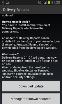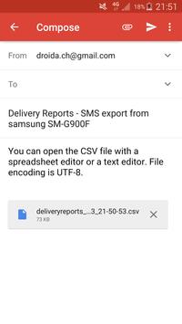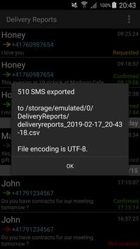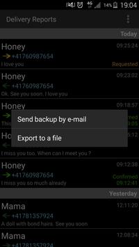 In the version that works, Delivery Reports lists SMS messages, their delivery reports and their status. You can export the list by e-mail or in a file.