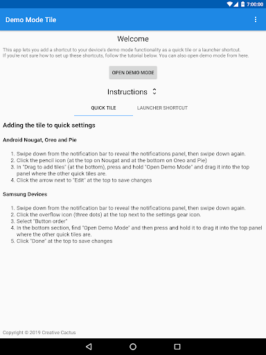 A must-have app for developers! Instead of navigating through numerous menus just to enable demo mode, use this app to add a shortcut to the demo mode settings either to your quick tiles or your home screen.