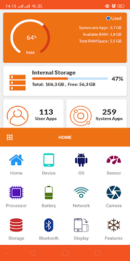 تطبيق معلومات الجهاز هو الأكثر شمولا وقوةا و يتوهم التطبيق الذي يوفر لك جميع المعلومات التي تحتاج إلى معرفتها حول هاتفك ونظامك وأجهزةك مع واجهة المستخدم الأكثر جاذبية وجميلة (باستخدام تصميم المواد).