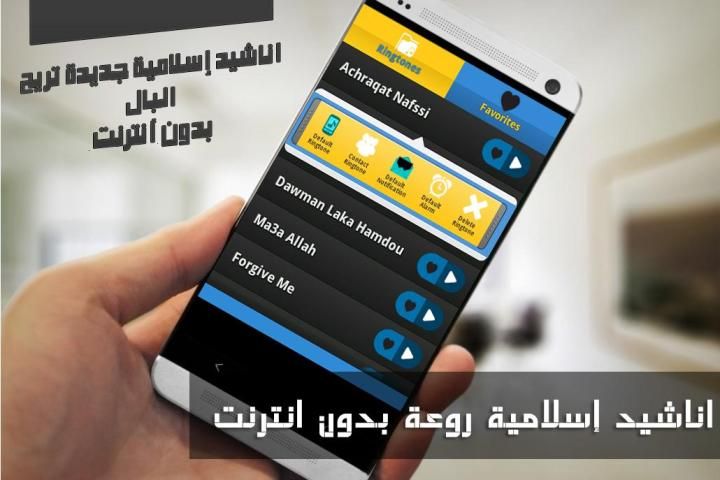 تطبيق اناشيد إسلامية بدون انترنت يحتوي على مكتبة غنية من الأناشيد والأدعية الدينية الاسلامية المختارة بعناية لإستعمالها كنغمة للهاتف أو نغمة رسائل او نغمة منبه.
