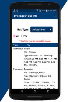 This app provide all information about Dharmapuri Mofussil bus and Town bus.