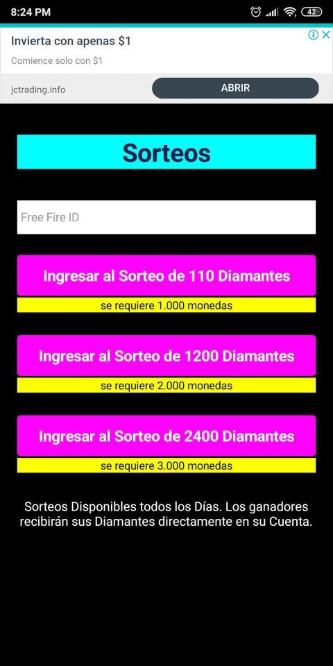 In this application you can get free diamonds Free with an easy game that will make you add coins infinitely which you can exchange for diamonds, gifts, participate in raffles that are made every hour.