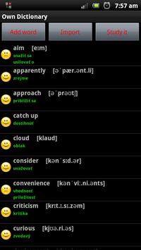 Enter your own vocabulary / quiz into your own dictionary