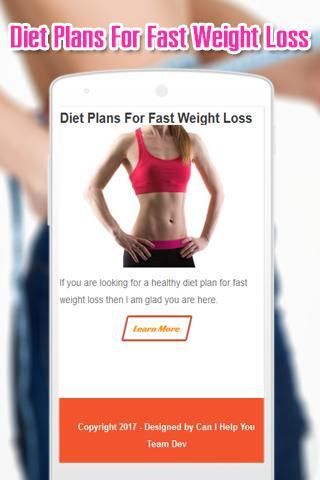 ويظهر هذا التطبيق "خطط النظام الغذائي لتخفيف الوزن بسرعة" المعلومات حول خطة وجبة غذاء فقدان الوزن، وصفات صحية قائمة النظام الغذائي وفقدان الوزن النصائح.