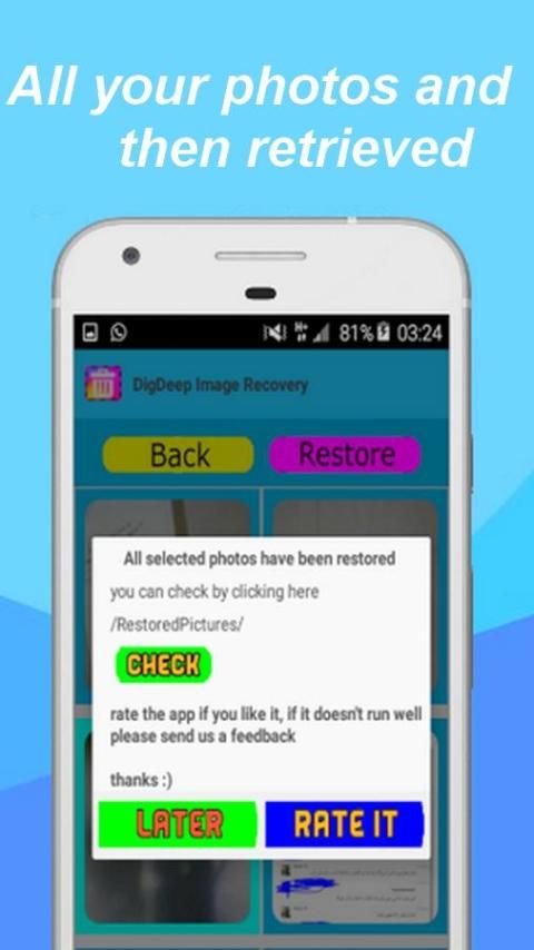 3. اضغط علي زر الاستعادة وسوف تجدها في الالبوم داخل هاتفك
