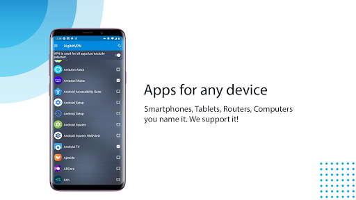 Looking for the best VPN for your devices? DigibitVPN prides itself on providing the most secure, fast & safe network for a fraction of the price on the competition, Privacy shouldn’t break the bank! – On your smartphone, tablet, or any Android TV device.