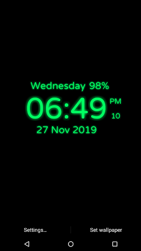 Digital Clock show date, time (12 Hr and 24 Hr), battery In percentage on phone screen with digital style with simple formate. time also show 12 Hr or 24 Hr formate as per your choice we also add so much date formate as you want to select if you does't need any indicator like secons, battery, date so just select hide and not show in screen. You can choose clock color with color piker and two style of clock just select clock style.