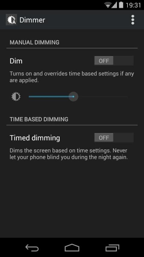 باهتة يشمل أيضا "وضع موقوتة" التي تسمح لك لتعيين أوقات عندما تريد مرشح ليتم تطبيقها وإزالتها بحيث لا تحتاج لبدء قتامة يدويا كل ليلة. إذا كان مستوى تصفية يبدو مرتفعة جدا أو منخفضة جدا، يمكنك ببساطة تعديله في الإشعارات حيث يمكنك أيضا تعطيلها تماما.