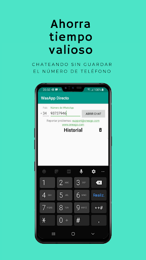 قام OneaGo بتطوير تطبيق سهل الاستخدام وسهل الاستخدام، والذي يسمح لك بالتحدث عن الدردشة على WhatsApp مع أي شخص، حتى إذا لم يكن لديك حفظها في قائمة جهات الاتصال الخاصة بك.