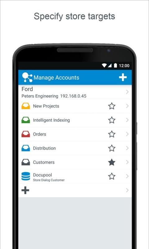 Save documents from any app in DocuWare. All you need is your DocuWare account. You can then use the Share function in your favorite app to send documents to DocuWare and securely save them there. Both file cabinets and document trays are available as store targets in DocuWare. When you select a file cabinet as a store target you can even preallocate indexing so you can find the document again at a later point as quickly as possible.
