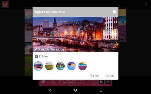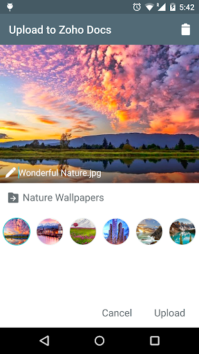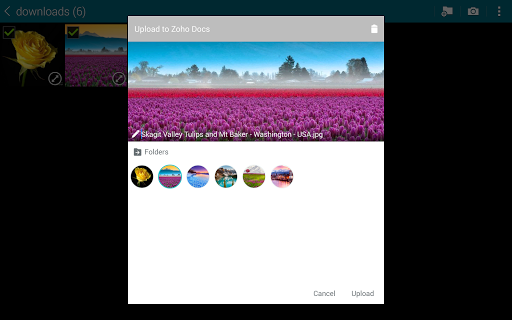 * تحميل أي ملف من جهازك المحمول مباشرة إلى مستندات Zoho