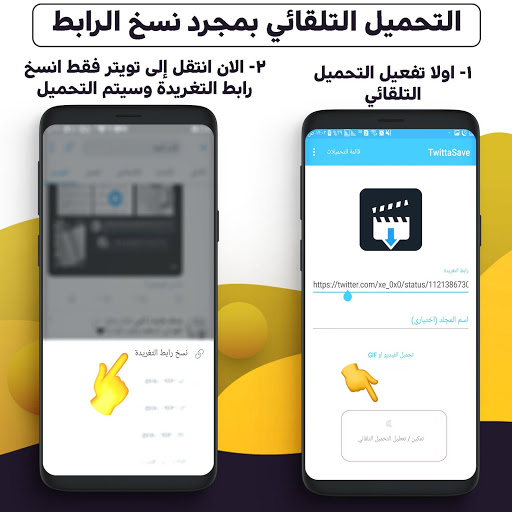 *ادخل التطبيق وقم بتفعيل التنزيل التلقائي ثم انتقل إلى تويتر وسيتم تحميل اي فيديو مباشرة بعد نسخ رابط التغريدة .