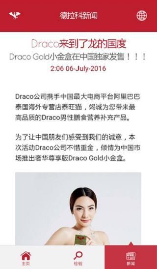 تطبيق دراكو هو للتحقق من DRACO منتجات مكملة للوجبات الغذائية. كل مربع على حدة يحتوي على رمز التوثيق الفريد الذي يتم فحصه من قبل التطبيق للتحقق من أن المنتج هو حقيقي DRACO المكملات الغذائية. وهذا يوفر راحة البال للمستهلكين الذين يمكن التحقق بسهولة أن منتجاتها لا المزيفة.