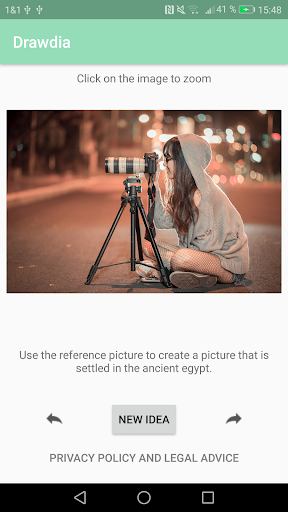 Than Drawdia might be a good choice. It creates random drawing ideas and gives you a reference picture to work with. You can zoom into the high-resolution reference picture and copy the picture. This way you can learn how to draw. Futhermore you get a random task to change something about the picture. Sketch, paint and be creative!