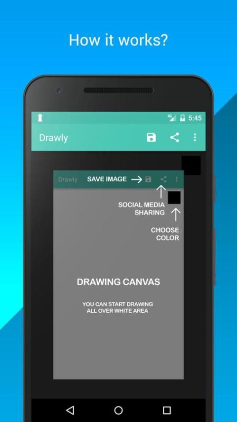 أريد رسم شيء ولكن لم يكن لديك ورقة؟ هذا التطبيق سوف تناسبك. فقط افتح التطبيق، واختيار اللون، بدء الرسم ويمكنك حفظ ومشاركتها مباشرة عبر البريد الإلكتروني أو الشبكات الاجتماعية.
