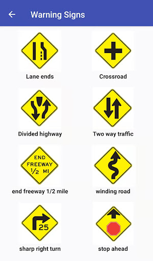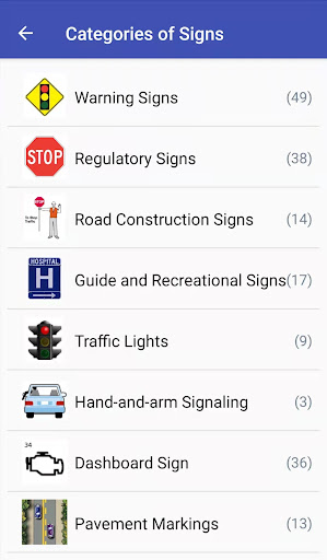 يتم تنظيم علامات المرور بعناية في مجموعات مختلفة ، على سبيل المثالعلامات التحذير ، علامات تنظيمية.ويمكن عرضها في قائمة أو وضع البطاقة الفلاش.طريقة مستقيمة وواضحة لك لتعلم هذه العلامات.