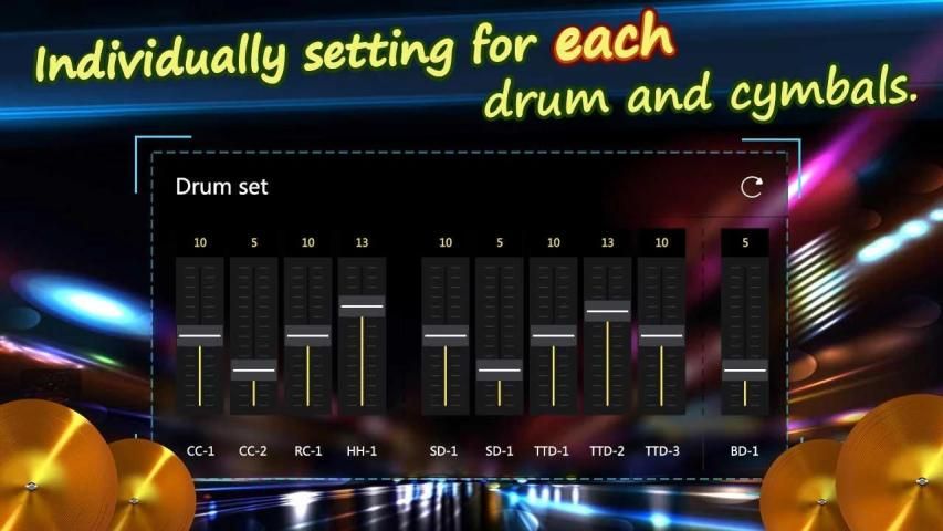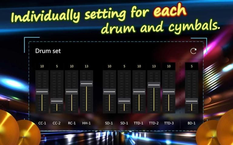 * اللمس المتعدد، يمكنك الطبول والصنج الطبول متعددة في نفس الوقت