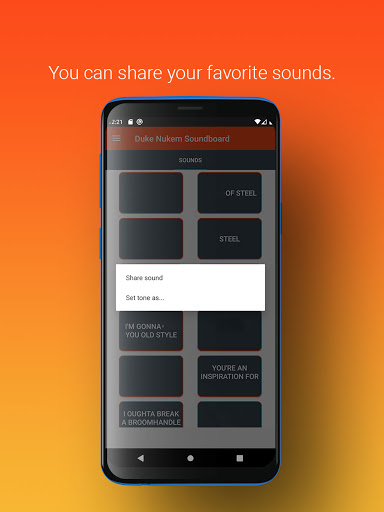 يحتوي تطبيق Soundboard Duke على أصوات مختلفة من Duke.كما يمكنك تعيين كنغمة نغمة ولون إعلام أو نغمة إنذار هذه الأصوات الدوقية.استمتع به Duke Soundboard * مشاركة ميزة التطبيق