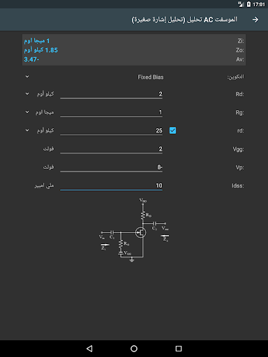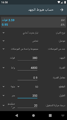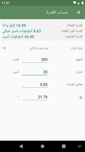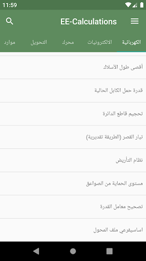 يحتوي هذا التطبيق على الحسابات الكهربائية ، والحسابات الإلكترو نية ، و حسابات الإضاءة ، و حسابات المحركات ، والتحويلات و مخارج الوصلات