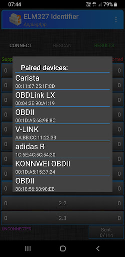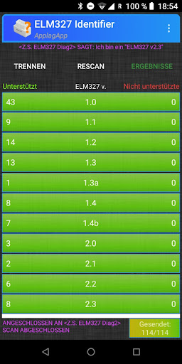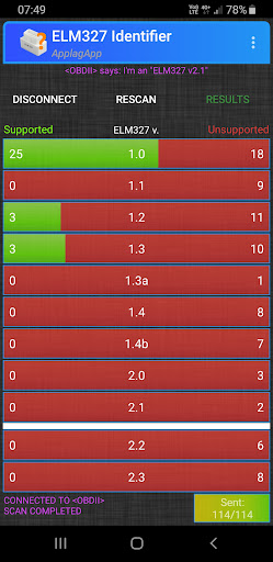 يتطلب البعض في الأمر اتصال سيارات بروتوكول محدد للعمل؛ للحصول على نتائج مماثلة، لا يتم التحقق من هذه الأوامر من قبل التطبيق. عدد الأوامر التي تم فحصها هي 114.