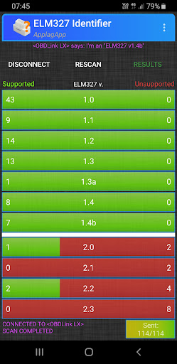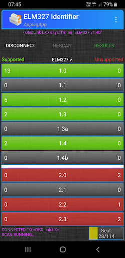 ILM327 يرسل كل ما يقرب من الأوامر المتاحة ويظهر ما هو مدعوم وفقا للمنطقة ELM327 ورقة البيانات الرسمية (حتى البرامج الثابتة v2.2 و v2.3 التجريبية التجريبية)، بحيث يمكنك التحقق بسرعة ما إذا كان إعلان المحول صحيح أو إذا كان محول وهمية.