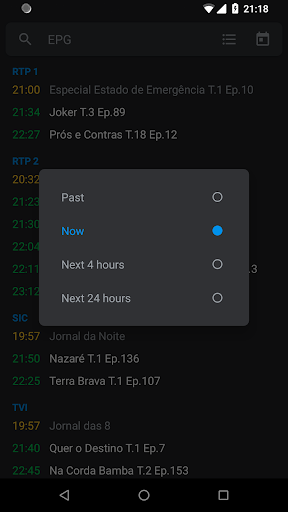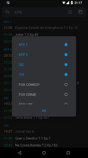 Check and search TV program scheduling information of several channels simultaneously. Currently only one portuguese EPG provider is supported.