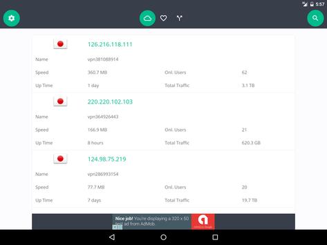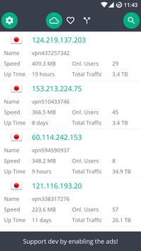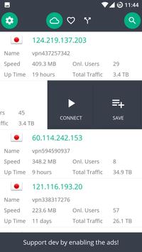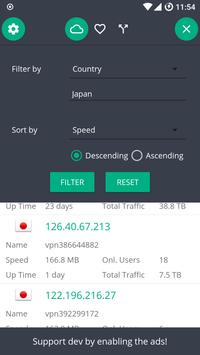 Since VPNs are hosted by volunteers. Their can last for days or disconnect in minutes. The best practice is choosing one not only by speed but also by up time. You can easily search and sort by filter feature!
