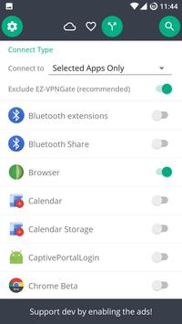 You should only enable VPN for applications that you should use for security purpose. You can change that in 3rd tab by selecting "Selected App Only" and select them by hand in the list below. Exclude option is for EZ-VPNGate to let it download list of VPN faster even you enable VPN for all applications.