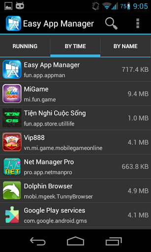 ✮ A free app help you manager your app quickly, free memory speed up & saver battery for your phone!✮ Uninstall, open, view info apps quickly by:- List apps by time installed, by name, size apk.- Quick search apps by name (for android 3.0 and newer)✮ List background running apps and allow stop them by one touch.
