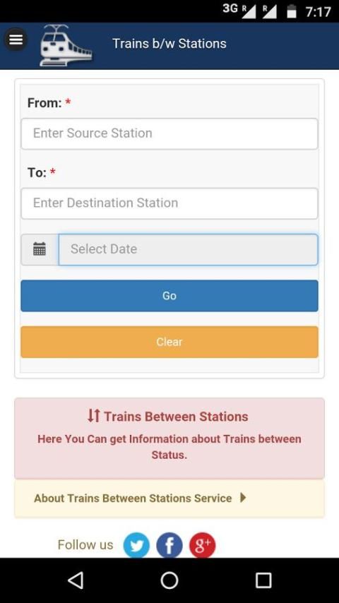3. القطارات ب / ث محطات - يمكن لأي شخص التحقق القطارات المتاحة بين محطتين على التاريخ المحدد.
