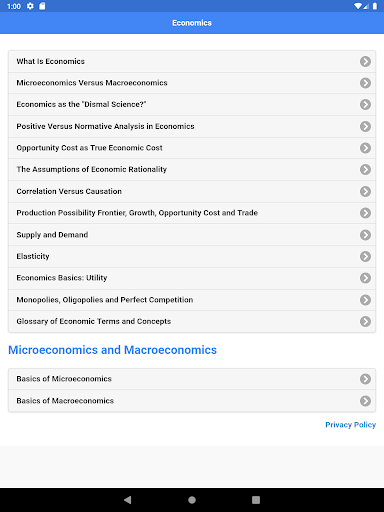مقدمة في الاقتصاد والاقتصاد الكلي والاقتصاد الجزئي للطلاب.يتضمن هذا التطبيق مذكرات المحاضرة والتعاريف وشروط الاقتصاد.إذا كنت تريد التعرف على الاقتصاد ، فسيساعدك هذا التطبيق.يحتوي هذا التطبيق على الحقائق الرئيسية للموضوعات الأساسية.ستعمل كمذكرات جيب.