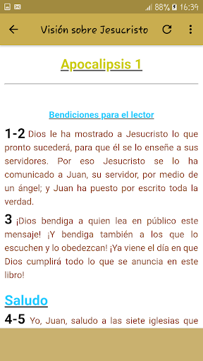 Biblia Apocalipsis La Revelación de Jesús. La revelación de Jesucristo, que Dios le dio, para manifestar a sus siervos las cosas que deben suceder pronto; y la declaró enviándola por medio de su ángel a su siervo Juan, que ha dado testimonio de la palabra de Dios, y del testimonio de Jesucristo, y de todas las cosas que ha visto.