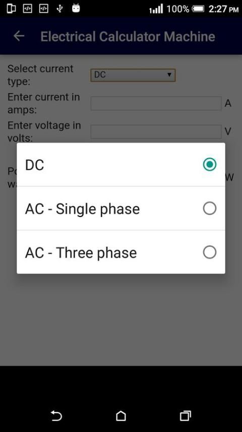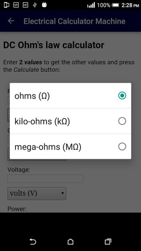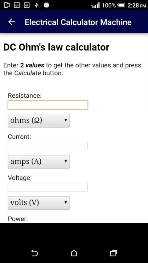 الكهرباء التطبيق حاسبة