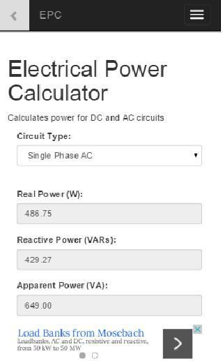 > يحسب السلطة في العاصمة وميلان الدوائر الكهربائية.