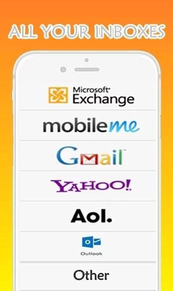 التطبيق البريد الإلكتروني لهوتميل أيضا يدعم جميع خدمات البريد الإلكتروني شعبية: