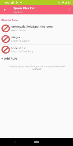 حدد قواعد رسائل البريد الإلكتروني التي يجب حظرها. [Ex: الموضوع هو "الفياجرا"]