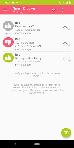 [يرجى ملاحظة: التطبيق لا * غير * إزالة السيارات البريد الإلكتروني البريد الإلكتروني من علبة الوارد من تطبيقات البريد الإلكتروني Android ما لم يتم تعيين علبة الوارد الخاصة ب RESYNC مع خادم البريد الإلكتروني. أيضا، تأكد من اختيار مجلد البريد الإلكتروني البريد الإلكتروني في صفحة إعداد الحساب! يتطلب الكاشف التلقائي تدريب المستخدمين، والضغط على الإبهام لأعلى وأيقونات أسفل على صفحة تدريب البريد الإلكتروني عبر البريد الإلكتروني.]