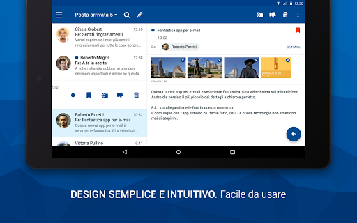 يمكنك تكوين صندوق بريد بريدك الإلكتروني على بروتوكول IMAP4 فقط إذا كنت تستخدم اتصال إنترنت. ، اقرأ الرسائل والرد ، وإرسال الصور ، وإضافة وعرض المرفقات: باختصار ، ابق على اتصال مع الأصدقاء والعائلة والزملاء.قم بتجربة وظائف جديدة لإدارة بريدك على الهاتف المحمول أو الجهاز اللوحي أو الساعة الذكية قدر الإمكان.