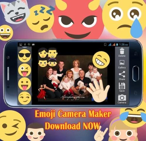 Emoji Camera Sticker Maker Pro" is your app now! begin adding emoji stickers to your images and impress your friends with them! currently with Emoji Camera Face For photos produce nice funny emoji face and smillies photos and you'll be able to our emoji photo editor is complete free, check it now!