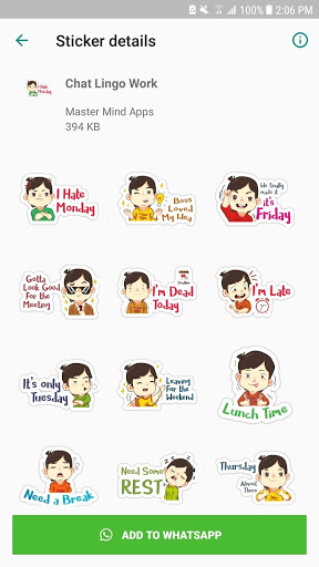 هل أنت جاد، شعور رائع، أعطني قبلة صغيرة wastickerapps، ملصقات عيد ميلاد سعيد، huggie، سوبرمتعب، جنون، النوم، المرضى، OMG ملصقات WhatsApp، رهيبة، متأخرة إلى العمل، عطلة نهاية الأسبوع، الفرح، وداعا البكاء، بالحرج، شكرا، القلب المكسور.