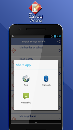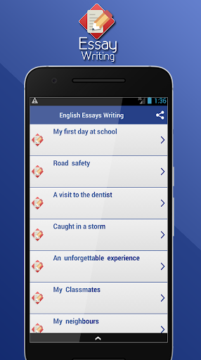 It's a free application that can help you working with english essay or writing task that your teacher gives you. Sometimes it's hard to start the first paragraph and it's always the first obstacleof wasting your time. With this apps, you can find which topic that is related to what you are going to write and there will be some ideas or opinions you can extract from it. As a result, it canhelp you finish your essay effectively.