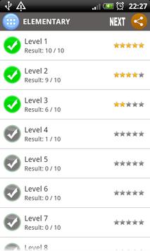 Currently we have 15000 questions divided into 3 main level: Elementary, Intermediate, Advanced. Each main level includes hundreds of sub-level to let you test easily.
